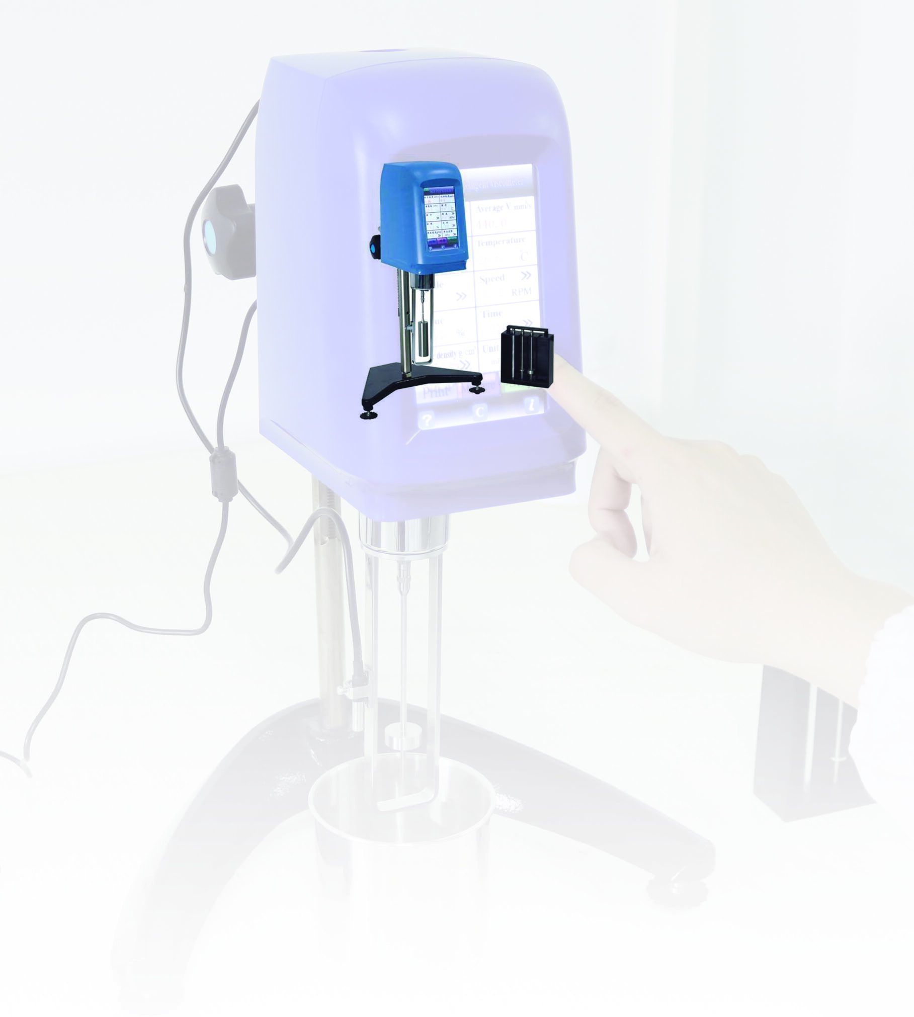 A tela de 5 polegadas de alta definição exibe a viscosidade, velocidade, porcentagem de torque, máxima faixa de medição sob corrente rotor e velocidade.