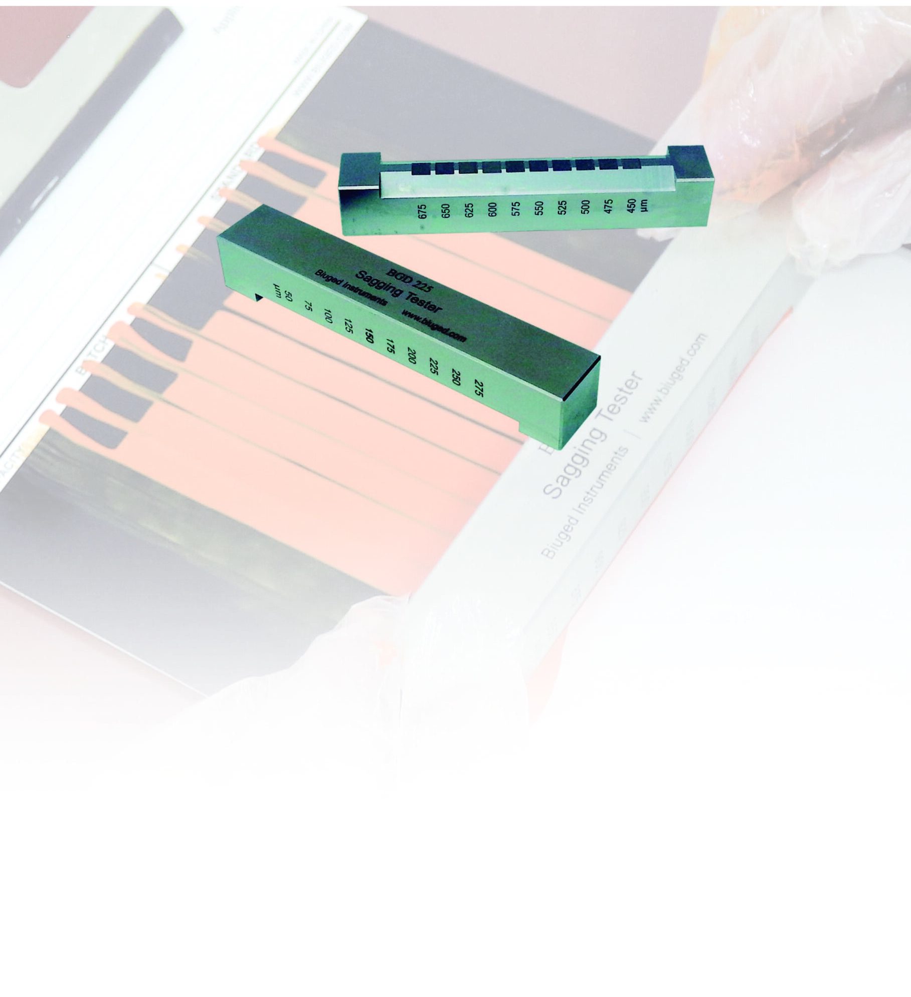 Medidor de Nivelamento em conformidade com as normas ASTM D2801-1994 (BGD 226/1) e NYPC (BGD 226/2). Fabricado em aço inoxidável com raspador reto com 5 pares de entalhes de profundidade crescente de 100 ~ 1000μm (ou 250 ~ 4000μm).